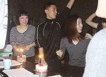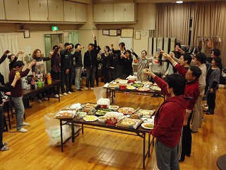 千秋楽の幕がおりてから3時間半後、懐かしい稽古場で打ち上げが始まりました。